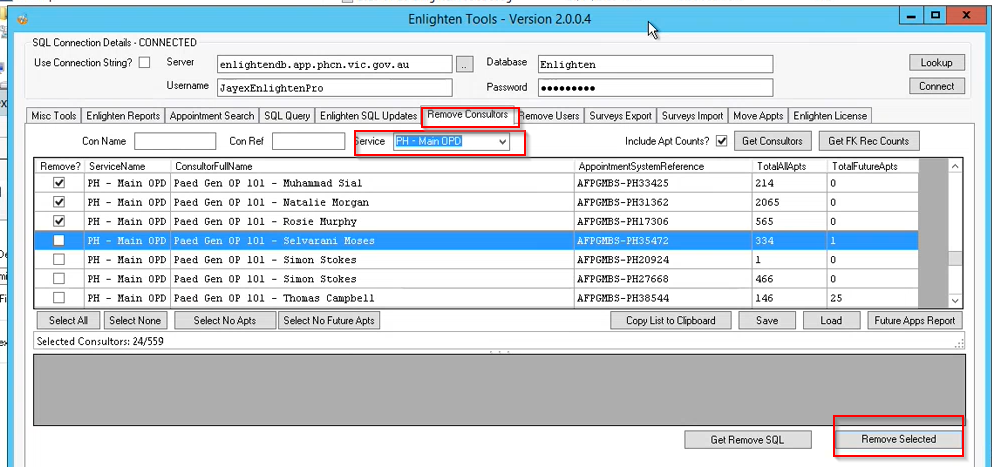 The customer requests us to remove Consultors that are no longer working at the hospital.